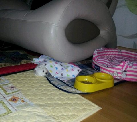낯설어서 그런지 집놔두고 쇼파밑에 들어가서 자더라구요 ㅋ 엄마가 조심스레 손수건을 덮어주셨어요 ㅎ