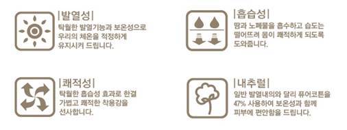 기본 면, 울 소재보다 20% 이상의 보온효과가 있다고 하네요.