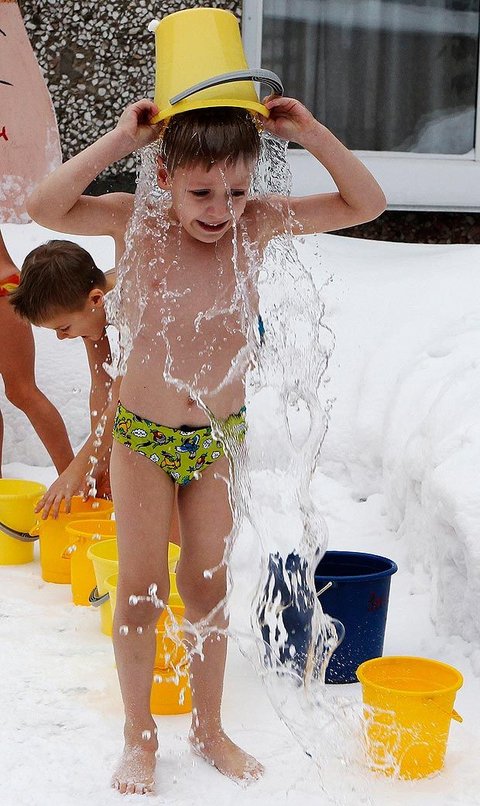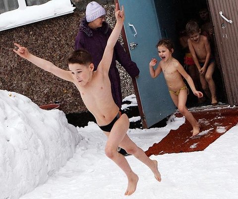 시베리아 유치원에서 영하 15도쯤은 유아들도 냉수마찰하기에 좋은 기온