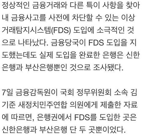 FDS 시스템 운영중인 은행