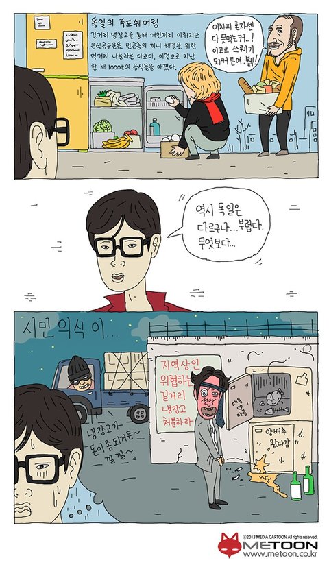 최근 뉴욕타임스에 따르면 독일 전역에 음식물 공유 장소는 약 100군데로, 이곳에는 냉장고나 선반이 놓여있다.