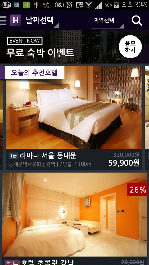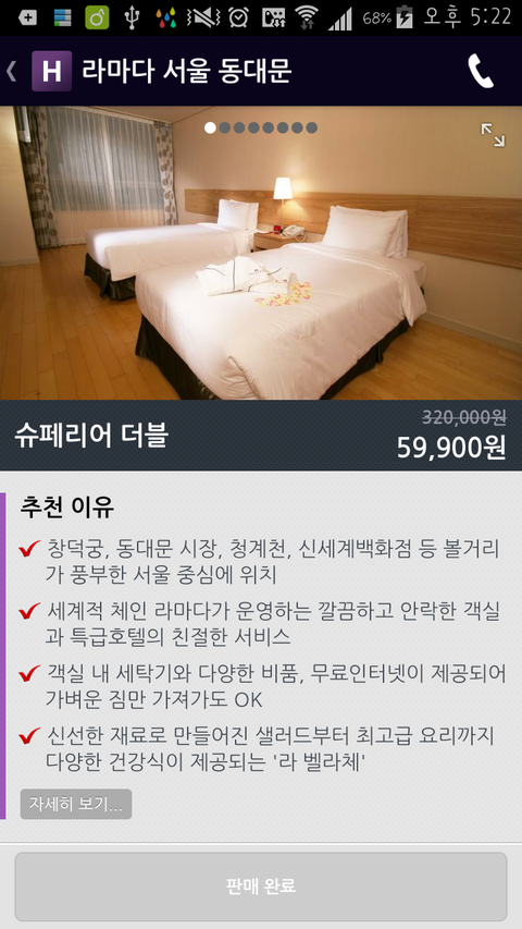 호텔을 누르면 실사로 찍은 사진이 쫙 나온다는...(그래서 삐까한 사진으로 속일수가 음슴)