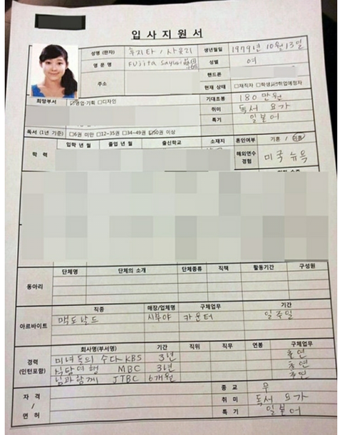 사유리 입사지원서