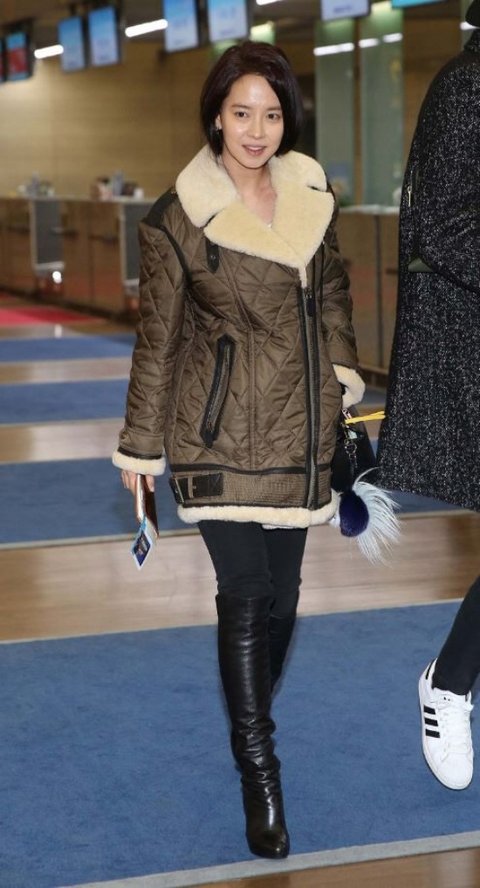 머리대충 묶고 공항에온 송지효