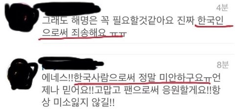 이일은 누가봐도 쟤가 대국민사과를 해야될만큼 전국민을 농락한 사건인데 뭐? 미안해? 그리고 왜 그말앞에 한국인으로서를 붙이는데 저런것들이랑 같은 한국인이라는게 쪽팔린다 저러니까 우리나라를 개호구로 보는거다 이 나라의암덩어리들아;