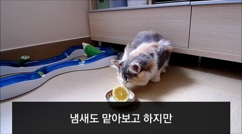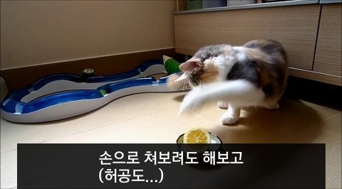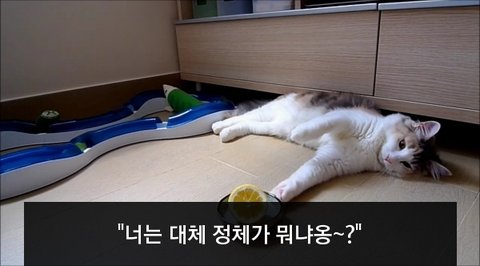 레몬과 싸우는 고양이
