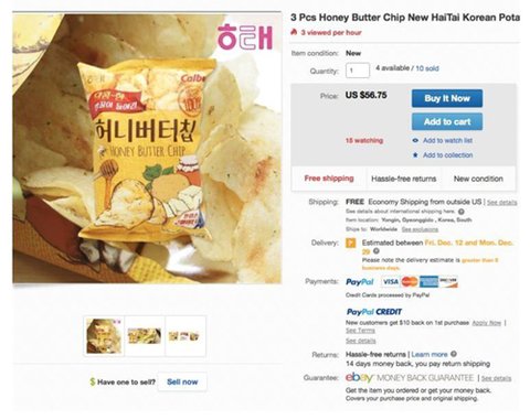 현재 ebay 올라온 허니버터칩 상황