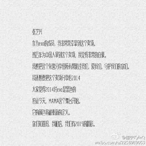 씽이 수상 소감이 중국에서 엑소를 지지하는