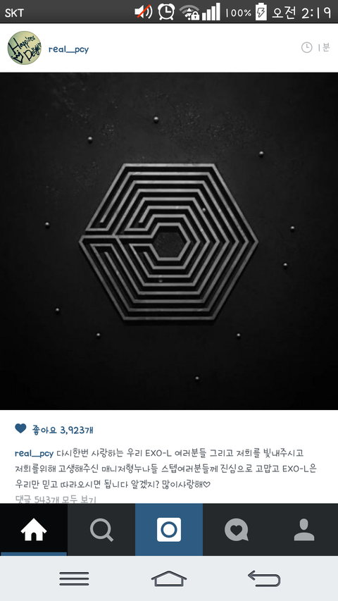 찬열이 인스타 나도 사랑해ㅠㅠㅠ
