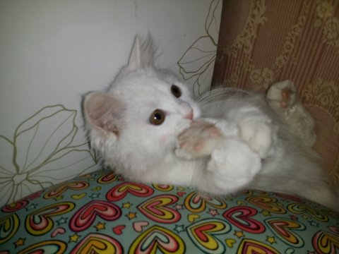 제 고양이라서 하는말이 아니라..너무 예쁘게 생겼어요.. 우리 냥냥이 이름은 원래 산토끼였어요 ㅎㅎ 토끼처럼 깡총깡총 뛰어다니고 하얀색이라서요 ㅎㅎ 그런데 토끼라구 부르니까 사람들이 토낀줄알아서 냥냥이러 바깟어요 ㅎㅎ 우리냥냥이 어떤가요?
