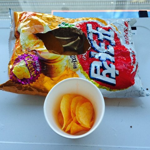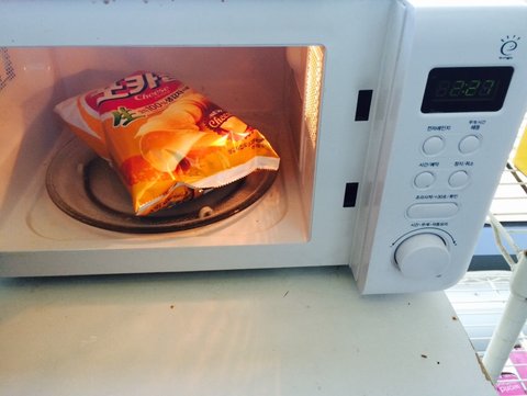 왠지 나쵸가 땡겨서 포카칩 스윗치즈 맛을 전자렌지에 돌리면 되지 않을까라고 생각하고 돌림 ㅎㅎ