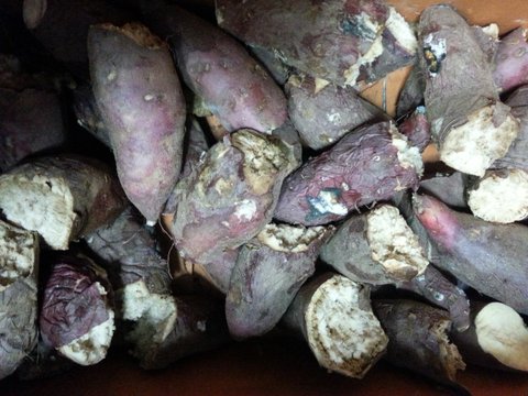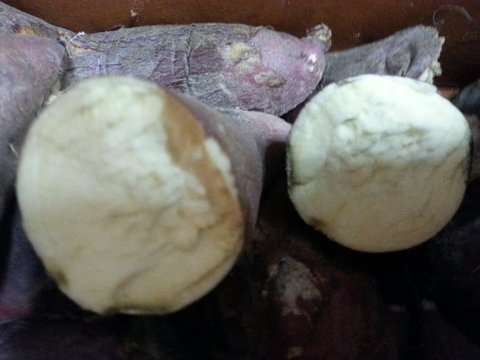 아무래도 이상해서 박스전체 고구마를 잘라봤더니 반정도가 위에 사진처럼 썩어있었어요.
