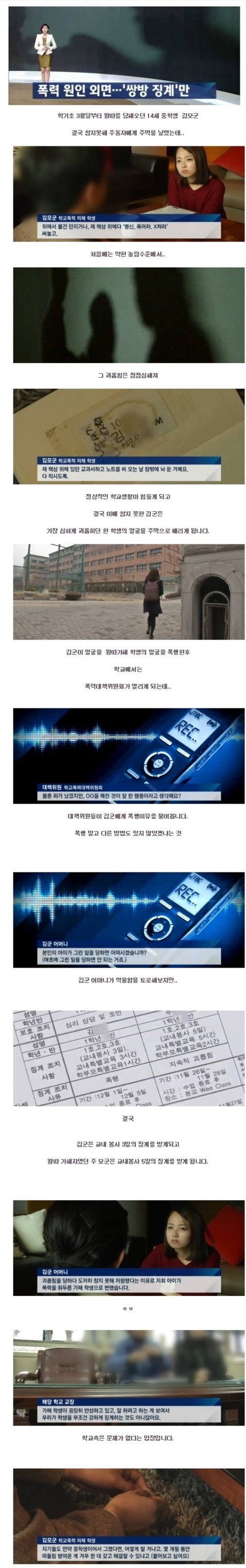 좀ㅡㅡ 선생이 해야할건 학교이미지 관리랑 뇌물받기가 아니라 학생들 관리인데 저렇게 쳐븅신같이 일처리하고 이러니 이러지고저러지도 못하고 착한학생들만 가슴앓이하다 자살하고 전학가고 이러는거지ㅋ 솔직히 이런경우는 알려져서 망정이지 안알려지고 그냥 퇴학처리 전학처리 당한게 얼마나 많겠음... 그리고 이런식으로 사건덮고 어물쩍넘어가고 부당하게 처리할수록 나중에 터졌을때 답도없을텐데 당장앞에있는거에 급급해가지곤 에휴.. 덮는다고 좋은학교가 되는게아니라 학생을 진심으로 생각해야지 좋은학교가 되는건데 그걸 왜모를까???