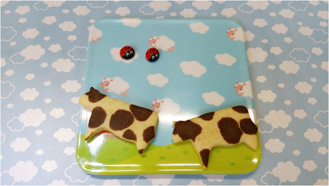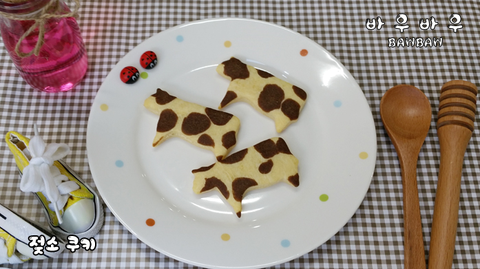 젖소 모양 쿠키커터로 모양을 만들어주고 구워주시면 되요