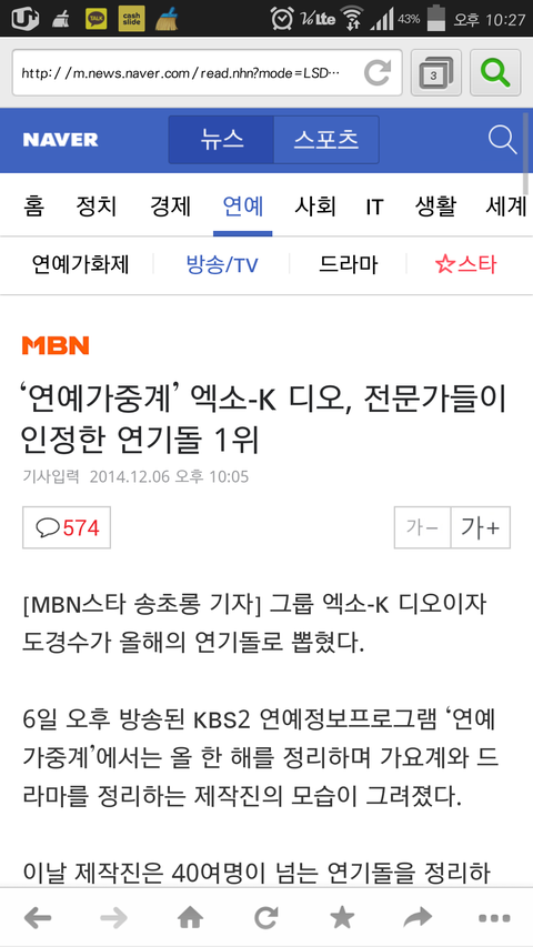 경수기사 존나웃기다 연기기사인데