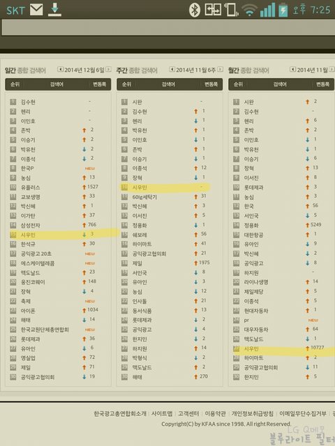 한국광고총연합에 시우민 검색어랭킹 돼 있어서 캡쳐했어~