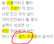 그냥 둘다 빼박인거 음치래퍼 라고 되있는데 랩몬도 마마에서 '가드올리고 따라와라 래퍼음치래퍼야'라 함.