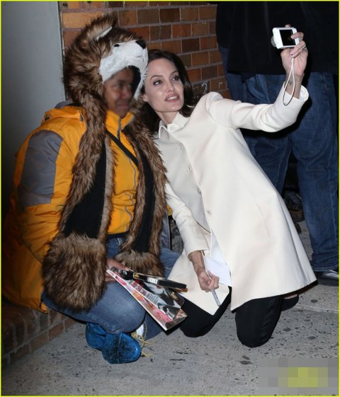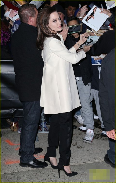 무릎까지 꿇고 싸인중인 안젤리나 졸리