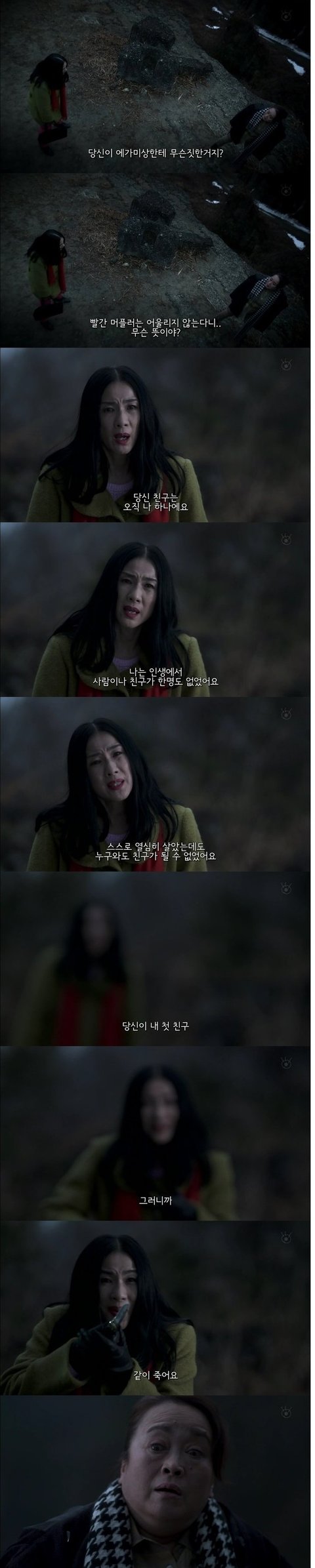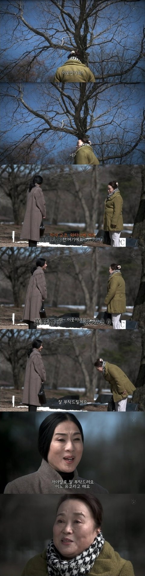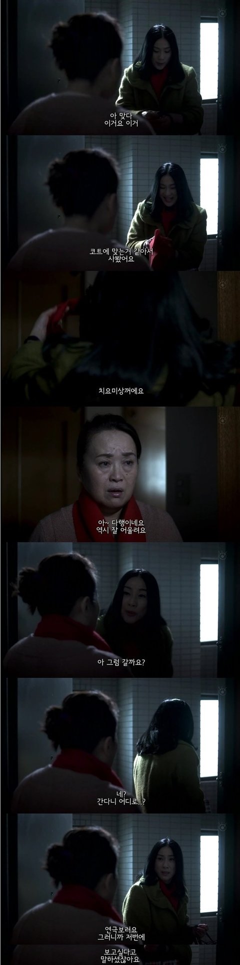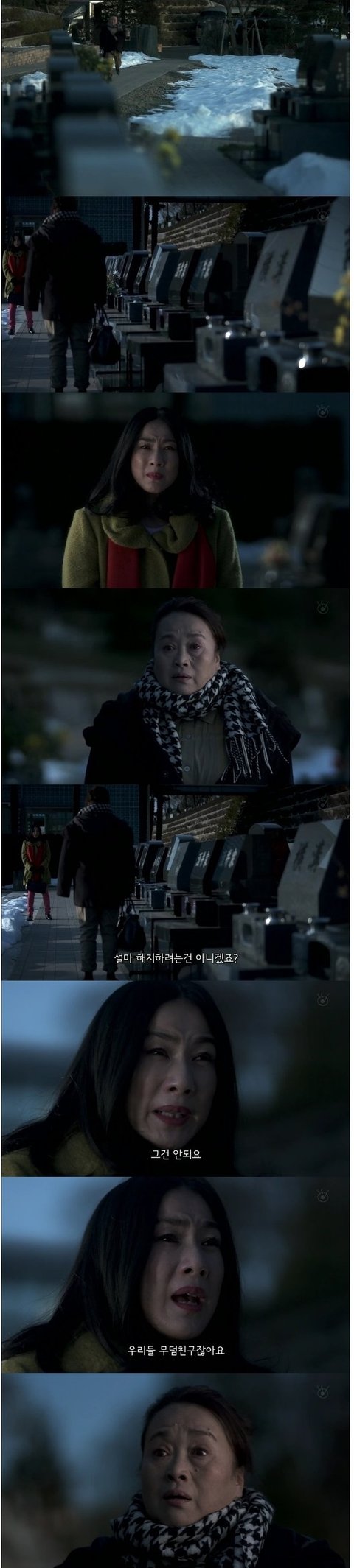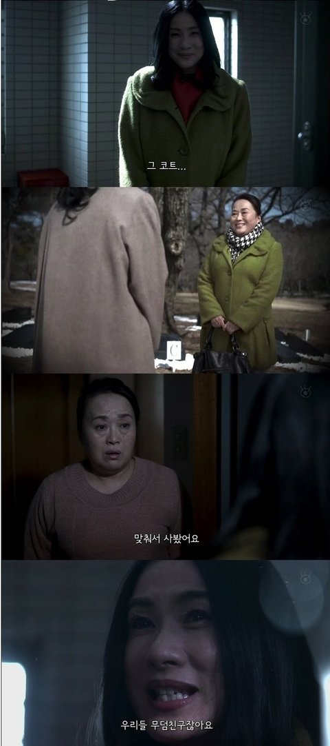 그 여자가 입고있는 코트가 무덤을 보던날 여주가 입고있던 코트였음.