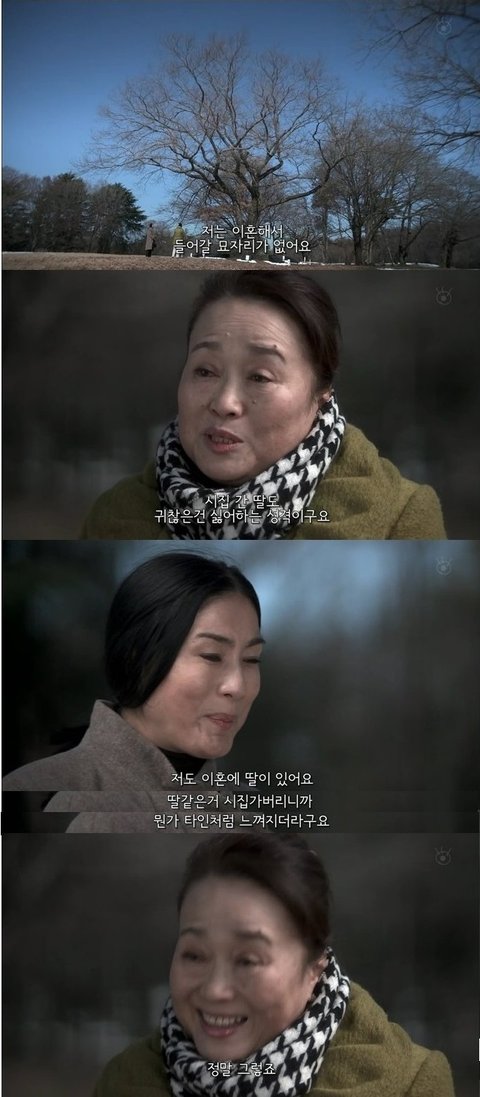 이혼을 하고 딸이 시집을 가버려 혼자지낸다는 것에 동질감을 느끼는 여주.