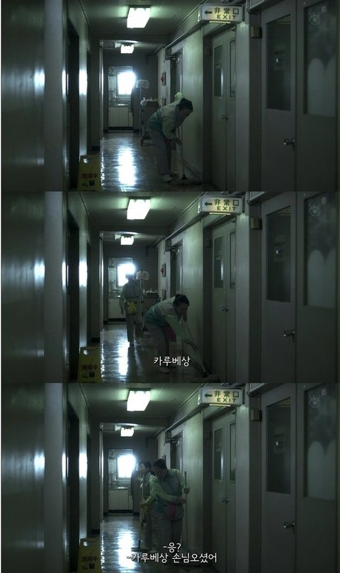 여주는 건물을 청소하는 일을 함. 일을 한창 하던 여주에게 손님이 찾아옴.