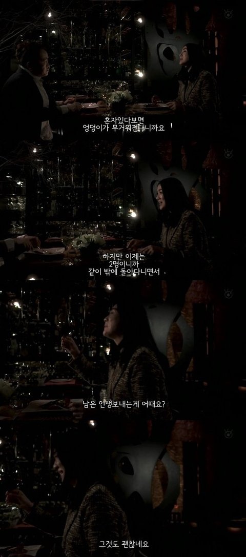 여주가 끝나고 나오는데, 그 여자가 기다리고 있음. 집에 들어가도 혼자니까, 함께 식사를 하자고함.