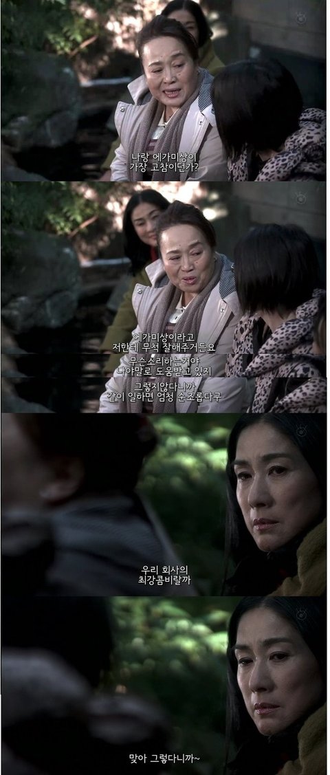친해보이는 여주와 동료들을 보며 시무룩해하는 그여자..