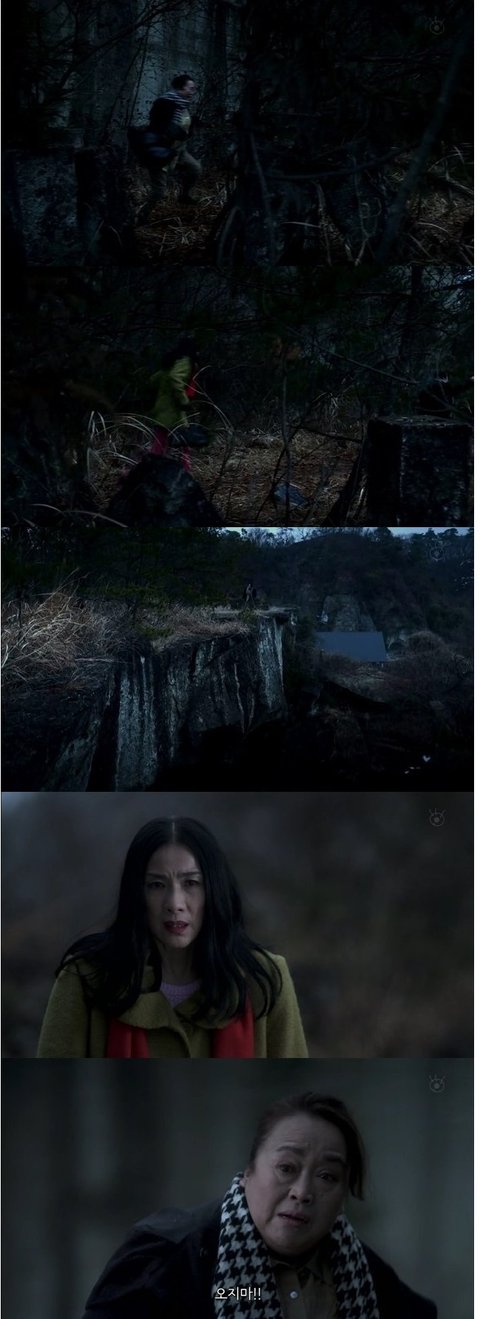 소름끼쳐하며 도망치는 여주. 하지만, 뒤에는 절벽 앞에는 그여자. 막다른 길에 갇혀버림.