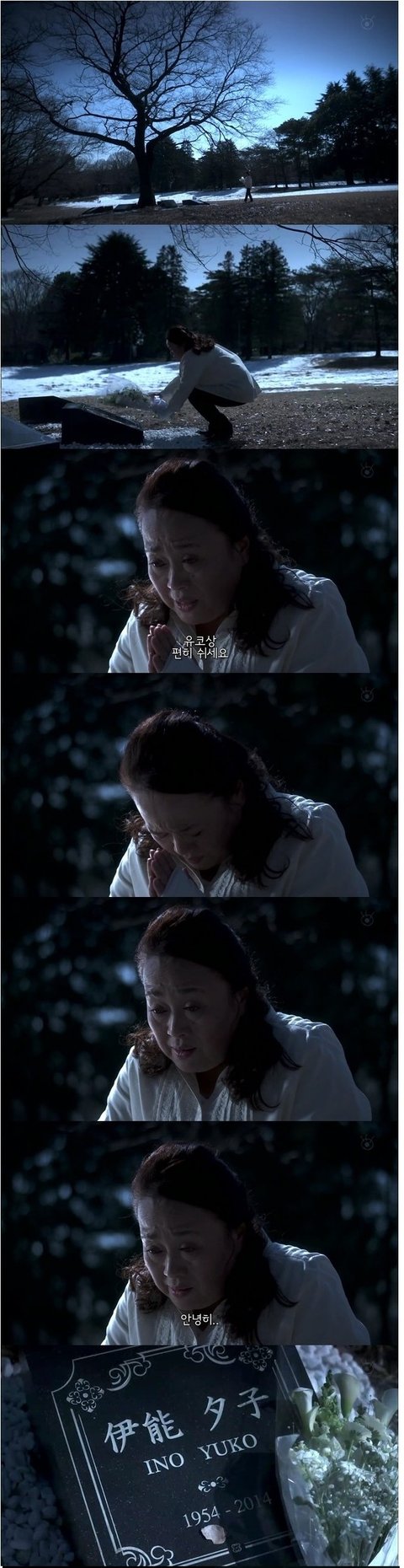 혼수 상태에서 그여자의 무덤앞에 있는 여주. 여주가 명복을 빌며 꽃을 놓는데 비석에 벚꽃잎이 떨어짐. 그 꽃잎을 주우려는 순간...