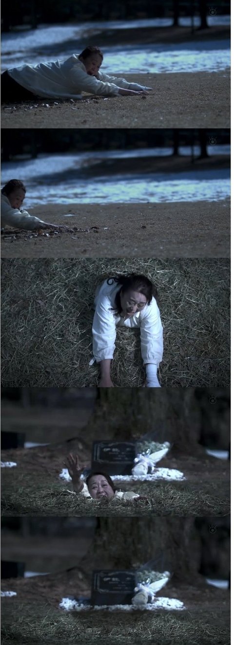 그 여자의 손이 나와 여주를 무덤으로 끌기 시작함.