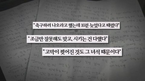 "축구를 하자고 나오라고 했는데 10분 늦었다고 때렸어요