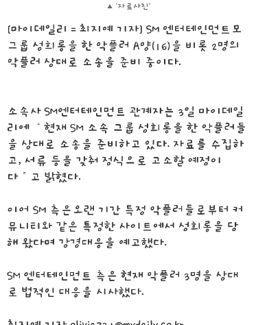 보통 고소 사유는 파장 큰것만 기사화하지 사소한건 조용히 처리 하는게 소속사 사장들 문제점