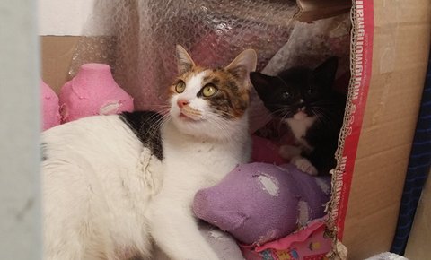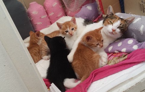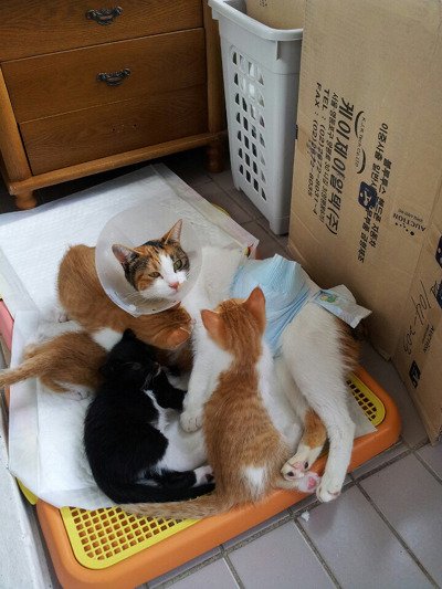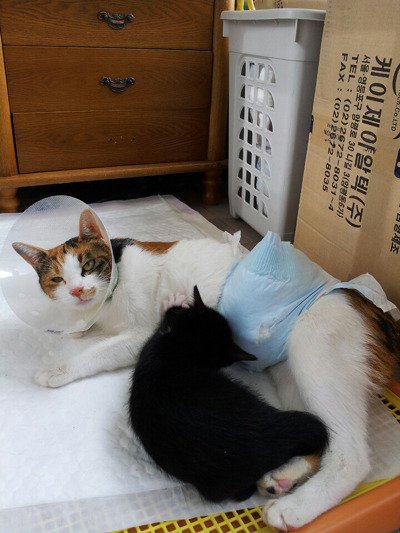 사람에 의해 꼬리절단한 길냥이 은비와 다섯꼬물이들.