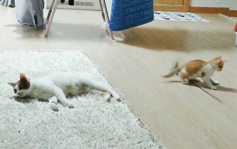 세븐이가 놀고있는 옆에 다른 고양이 한마리 보이시나요?