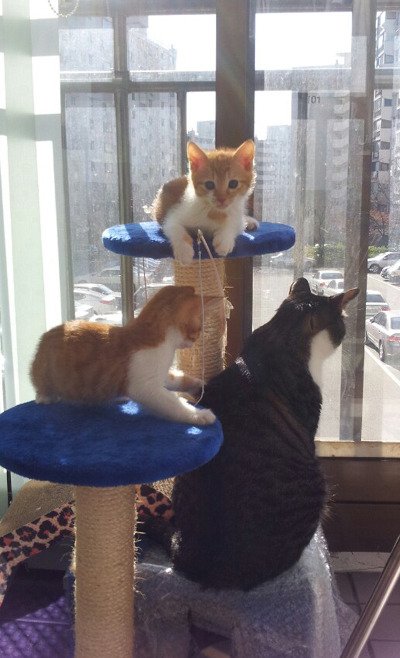 많은분들의 관심덕분에 엄마젖을 뗀 지금은 입양처로 가서 행복한 묘생을 시작하였습니다.