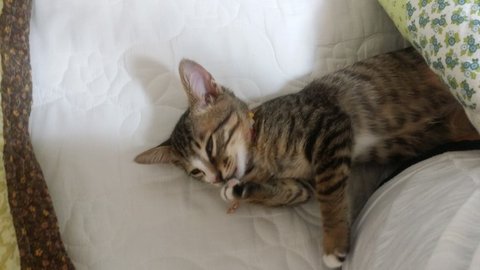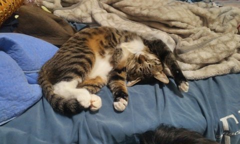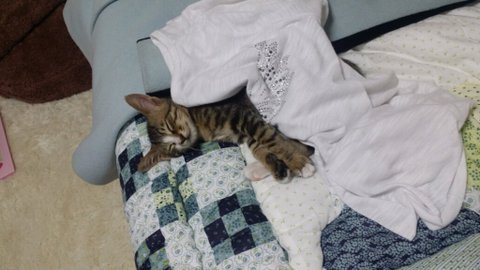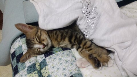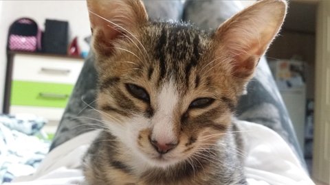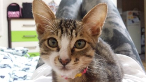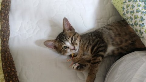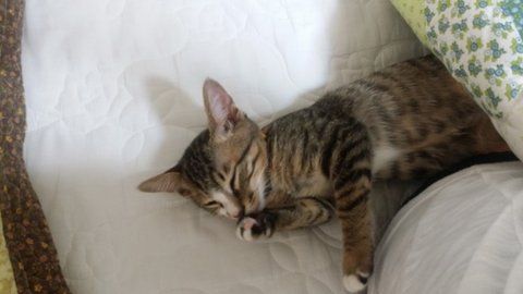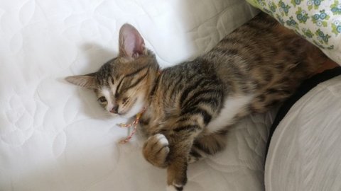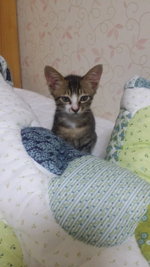 길고양이다 보니 뱃속에 있을때 엄마에게서 영양을 많이 못받았는지 다른 고양이들에 비해 꼬리도 짧고, 끝도 조금 휘어져 있었습니다.