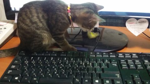 일한다고 앉아 있으면 모니터에 붙어있는 메모지 다 씹어버리고~ (역시 천재!)