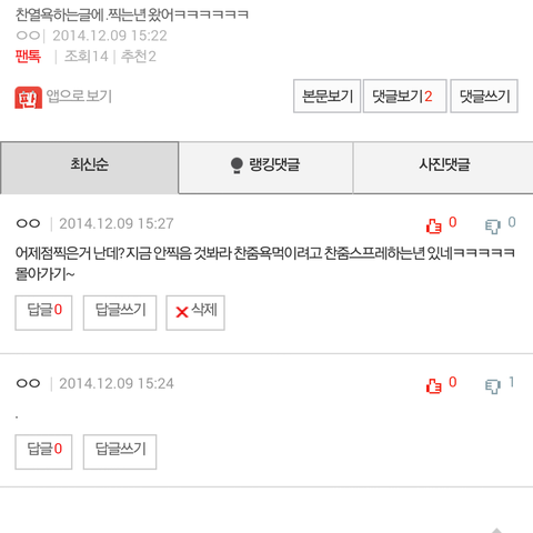 오늘은 찍은적도없는데 . 찍는 찬줌있다고또올라오는 꼴보니 찬둠 욕먹이려고 코스프레하는년 있네ㅋㅋㅋㅋ왜그러고 살까