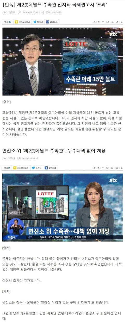 초고압 변전소위 롯데월드 수족관