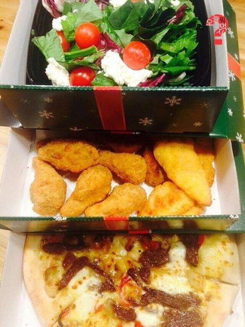 치킨너겟 + 동네 5000원 피자 + 샐러드 = 3만원