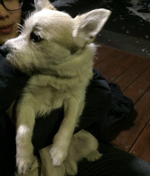 인천광역시 부평구 산곡동 산곡고등학교 근처 현대이파트 후문 앞에서 강아지를 주웠습니다.