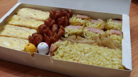 이건 계란말이 비앤나 그리고 남은 스팸이랑 카레가 있길래 노랑색으로 만들어 봤어여