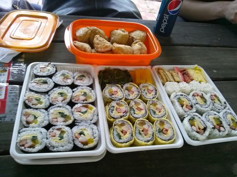 또 벤치에서 먹던 도시락 남자친구한테 처음으로 김밥을 싸서 줬는데