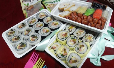 이쁘게 할라고 김밥, 누드김밥, 계란김밥도 해봤어요