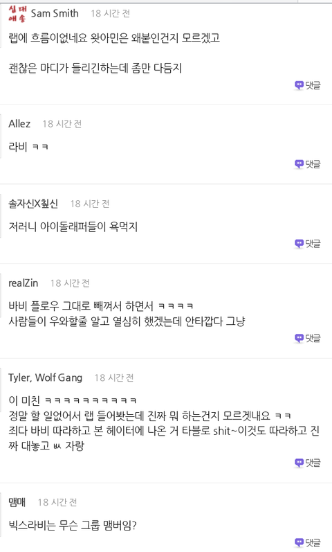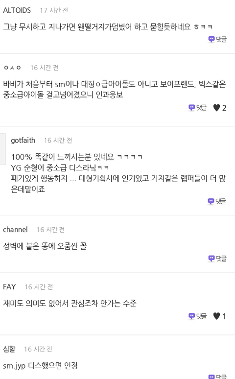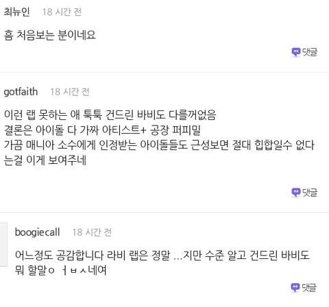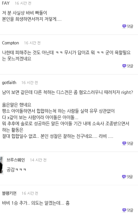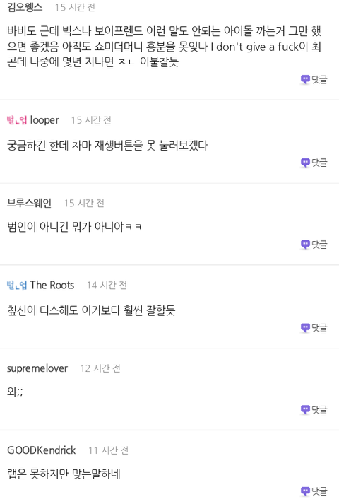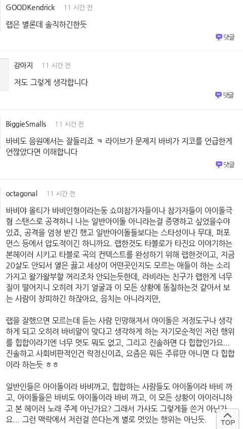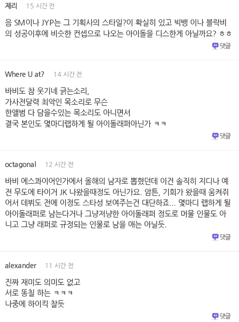 공감간 댓글은 바비가 너무 애매하게 언급했다는것 특히 대형기획사가 아닌 아이돌만을..의도야 본인만 알겠지만