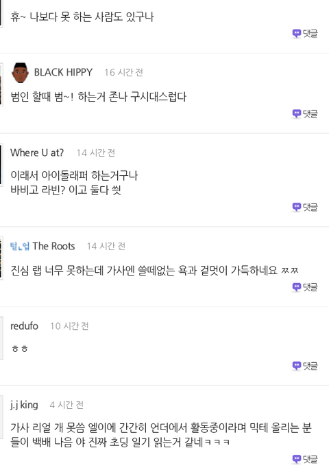 팬들도 어느정도 자기 아이돌이라도 랩퍼를 지지한다면 힙합문화에 대한지식을 쌓아야하지않나..싶음