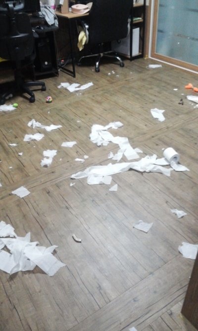 제가 옆에서 컴퓨터 하고 있으니깐 ..베란다 들어가지 말라고 막아노은