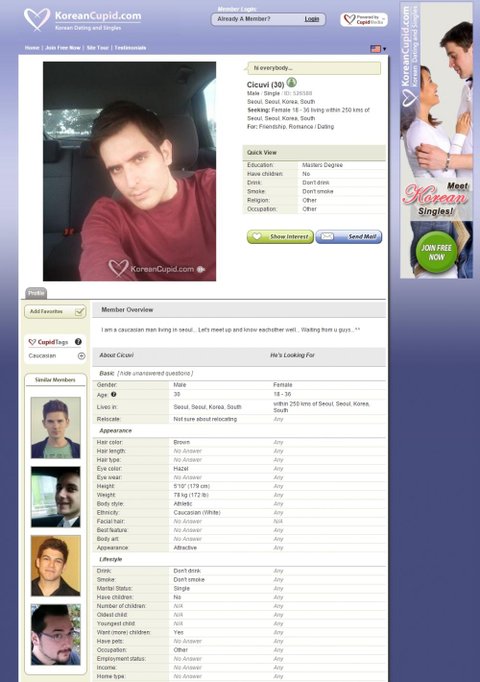 난 서울에 사는 백인 남자임... 만나서 서로에 대해 잘 알게되고 싶어요. 연락 기다릴게요 ^^