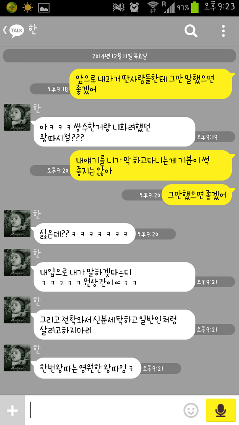 그런데 이런태도로 나오니 카톡캡쳐를 해서 이미지첨부로 올렸던거구요..