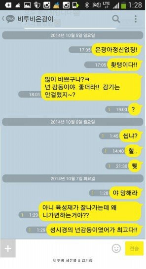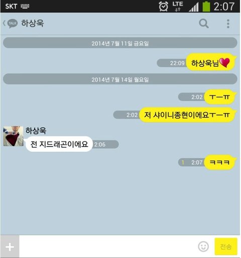 우에 내용은 다 연예인들이 자신의 트위터에 올린 카톡캡쳐짤입니다.